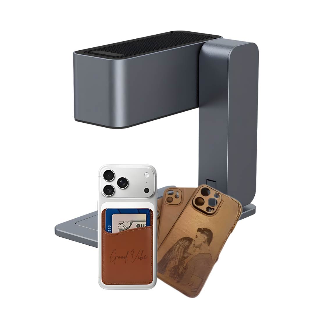 • El Mini Laser redefine la personalización portátil. Construido con un cuerpo de aleación de aluminio de alta resistencia y un acabado elegante en gris espacial, este dispositivo combina estética premium con un rendimiento industrial. Su diseño ultra compacto es perfecto para cualquier escritorio, permitiendo grabar y cortar una variedad asombrosa de materiales con precisión láser.